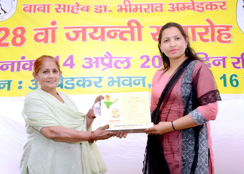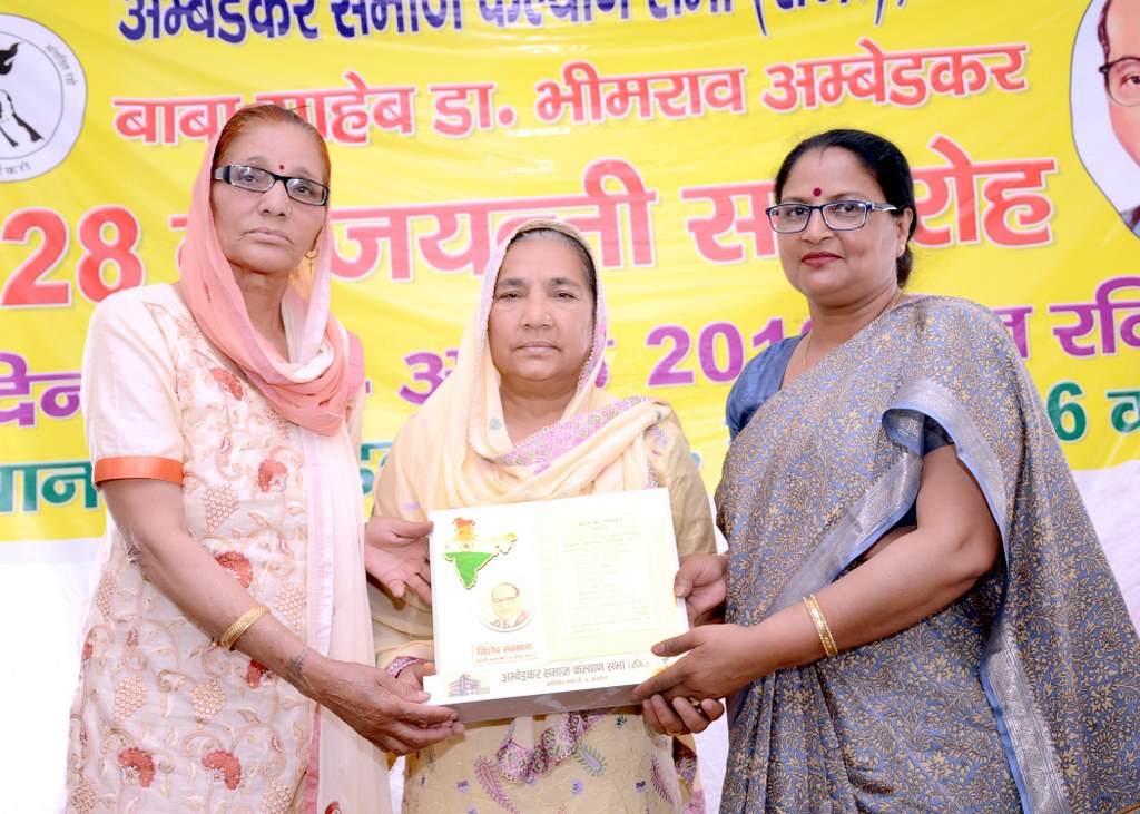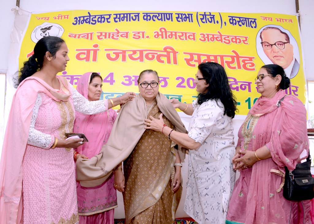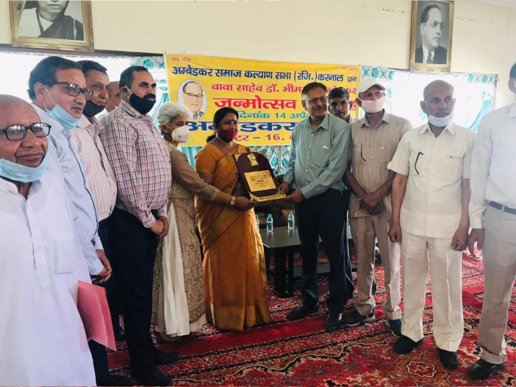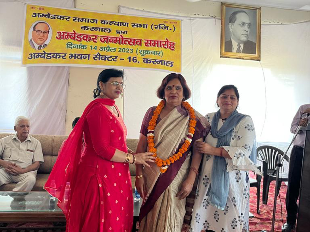 14.04.2023 को अम्बेडकर भवन सेक्टर 16 करनाल में अम्बेडकर जयंती के अवसर पर आयोजित समारोह मुख्य अतिथि श्रीमती सरोज बाला गुर DEO सेवानिवृत्त