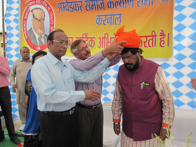 28-2-2016 Sh. Ram Das Athawale Hon'ble M.P Rajya Sabha during Bharat Yatra at Ambedkar Bhawan Sector-16, Karnal
