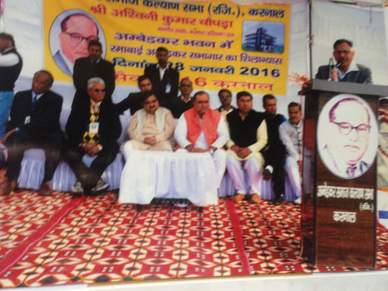 Special Guest: Sh. Satbir Singh Kadyan Hon'ble Speaker and all MLAs of Karnal and Panipat distt. C.M announced One Acre of land for Ambedkar Bhawan but due to election of Vidhan Sabha allotment letter not issued but demarcated One Acres Land in map of sector-16 karnal for Ambedkar Bhawan.