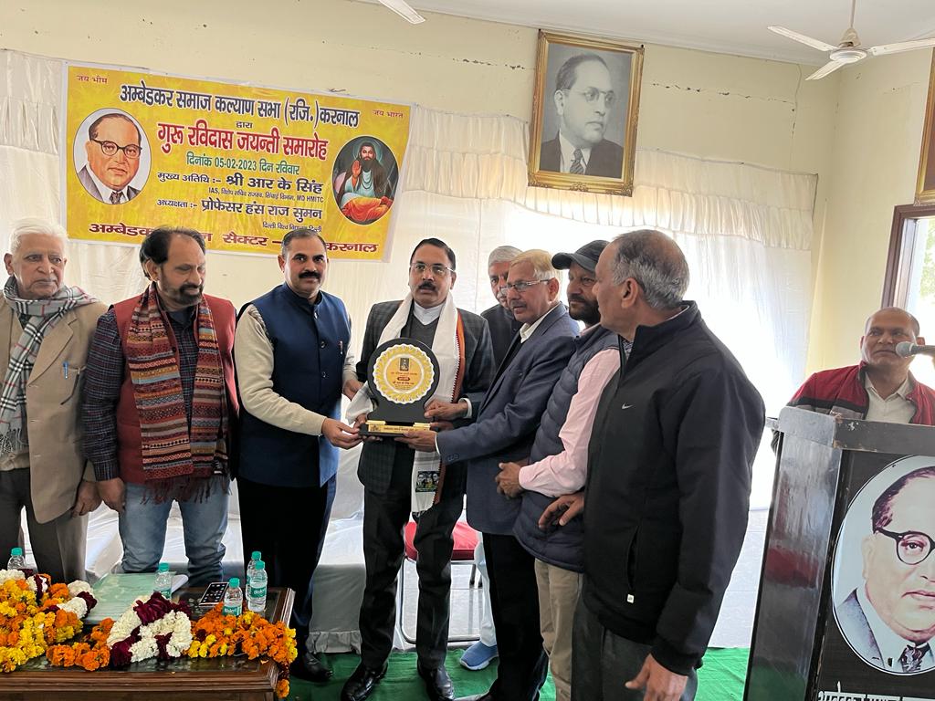 05.02.2023 को अम्बेडकर भवन सेक्टर 16 करनाल में गुरु रविदास जयंती के अवसर पर आयोजित समारोह में मुख्य अतिथि श्री आर के सिंह IAS हरियाणा