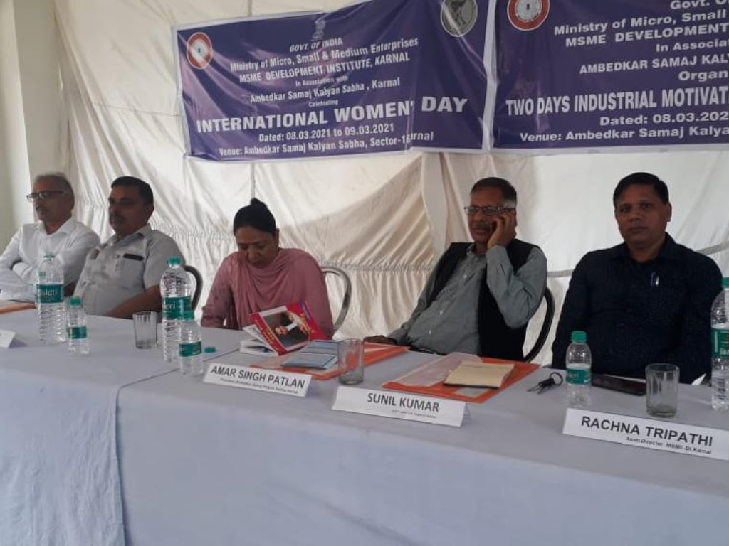 दिनांक 08.03.2021 व 09.03.2021 को महिला दिवस के अवसर पर अम्बेडकर भवन में लघु एवम् शुक्ष्म उद्योग विभाग भारत सरकार ,पंजाब नेशनल बैंक ,खादी ग्रामोद्योग हरियाणा व NABARD के सौजन्य से प्रशिक्षण कैम्प व रोज़गार कैम्प का आयोजन किया गया